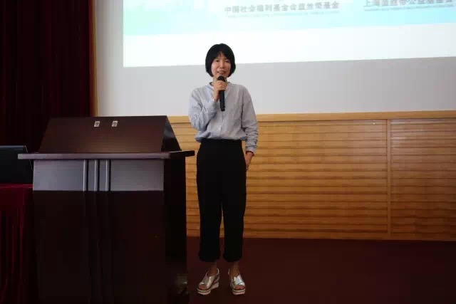 99公益日项目启动仪式上,中国社会福利基金会蓝丝带基金和上海蓝丝带公益基金会99公益项目负责人潘小娟为参会的企业家们详细讲解99公益日“企业一起捐”项目,发动企业团队共同为项目贡献自己的力量。