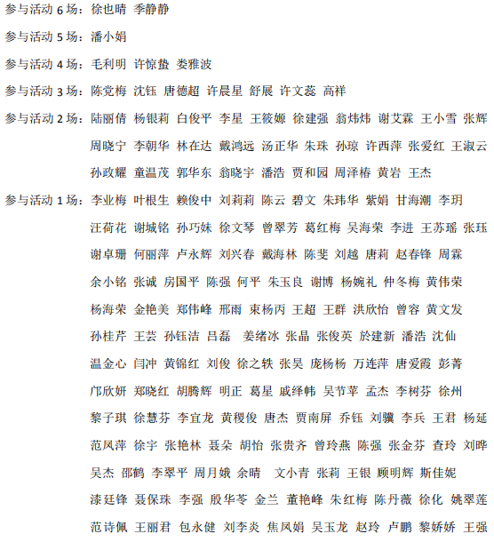 (附:参与场数依据为6场活动签到表名单,如有遗漏还望理解。)